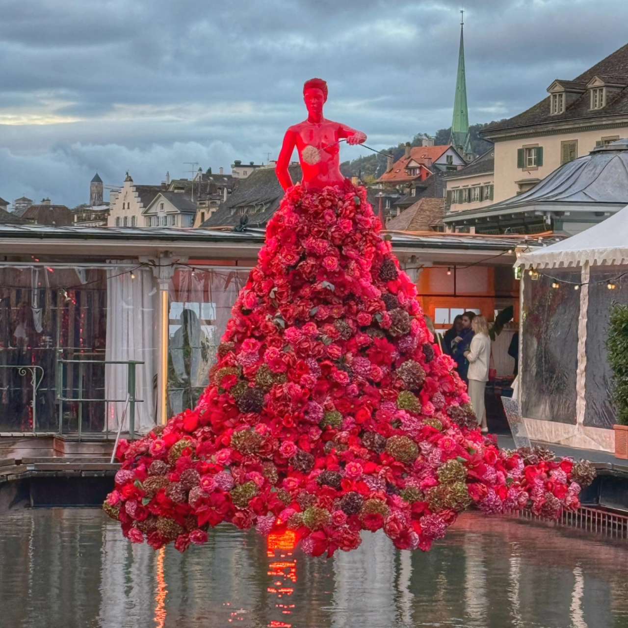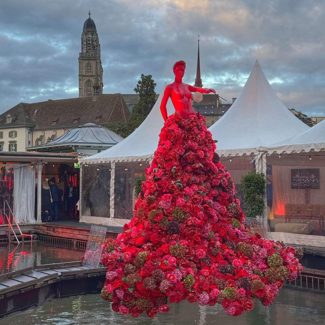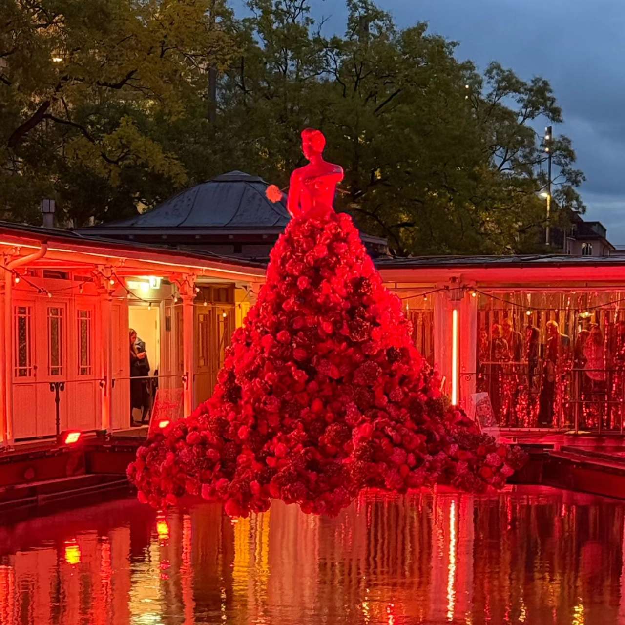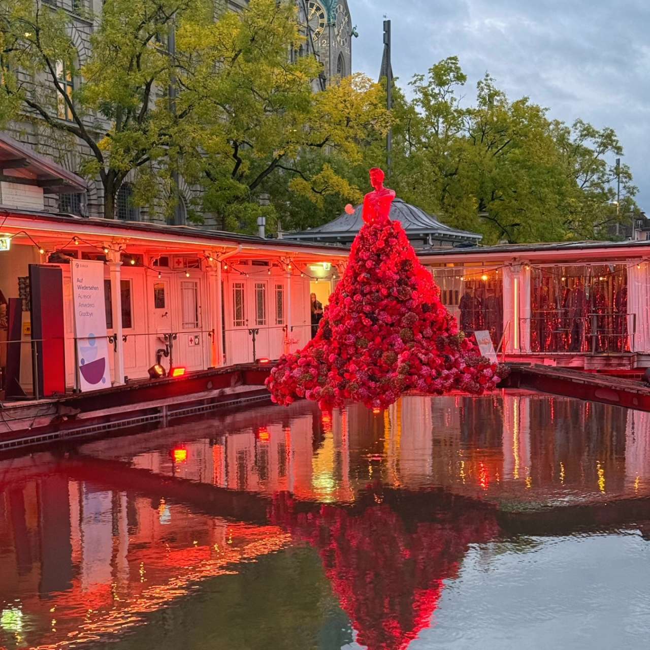 On the occasion of the 20th Zurich Film Festival, Blumen Krämer AG, under the leadership and idea of Paul Fleischli, has created something very special: an elegant red lady, whose dress is made of bright red flowers, has adorned the bridge of the Frauenbadi in Zurich since today.