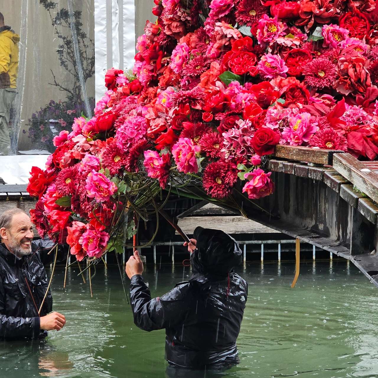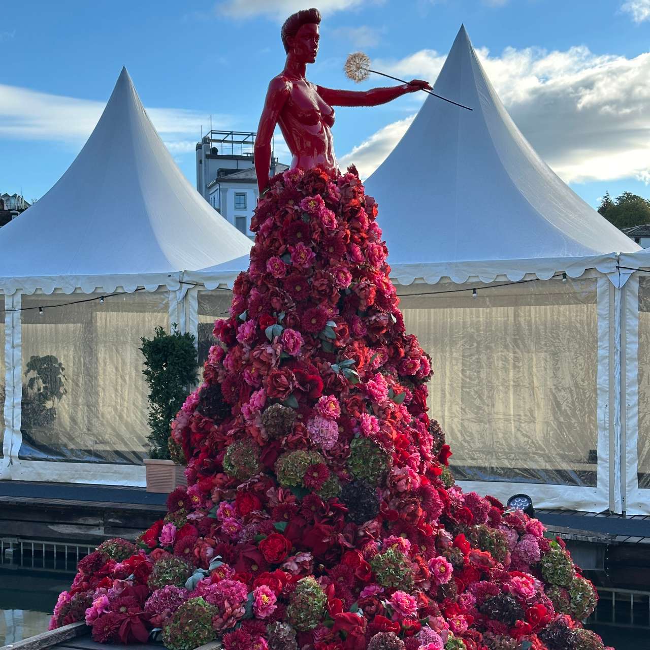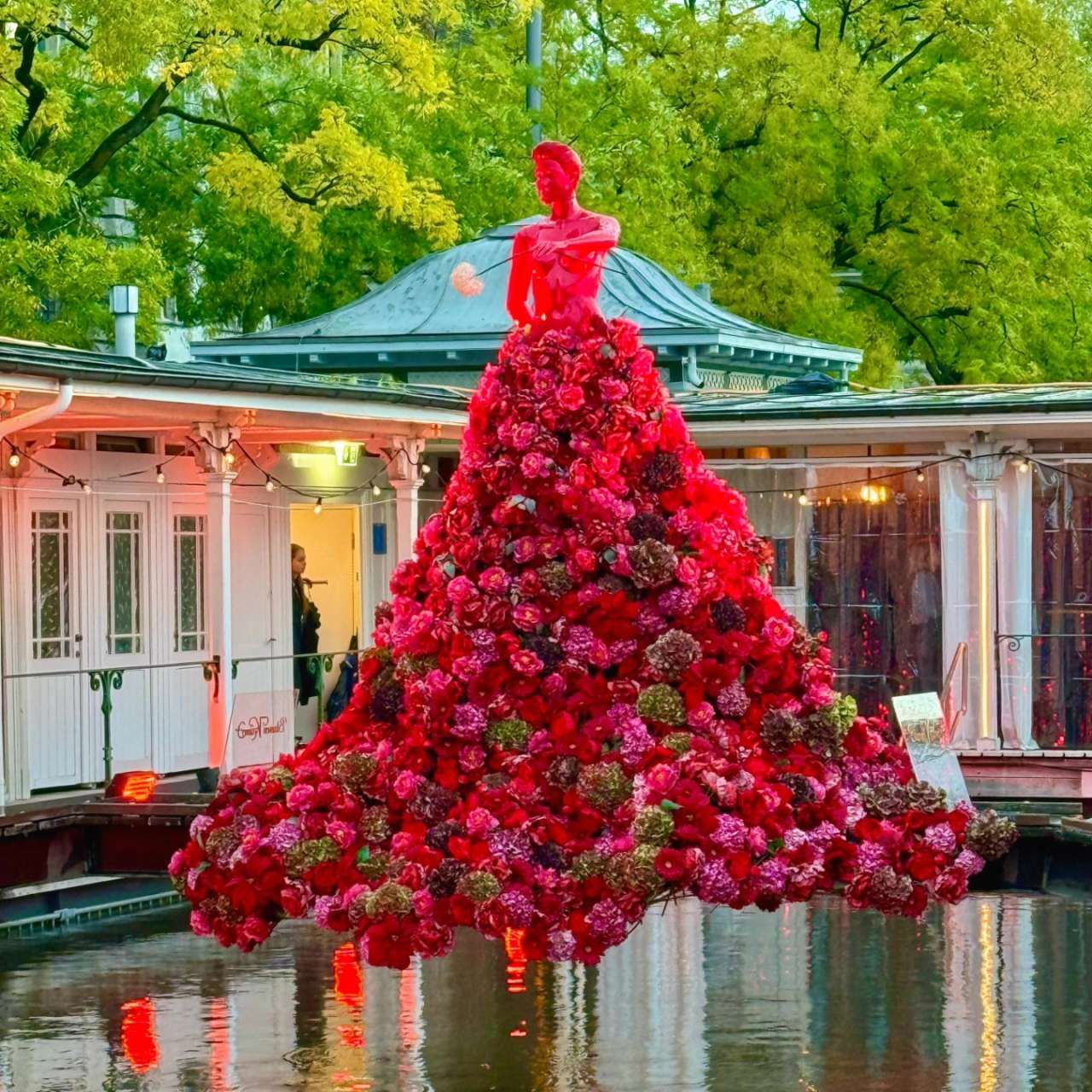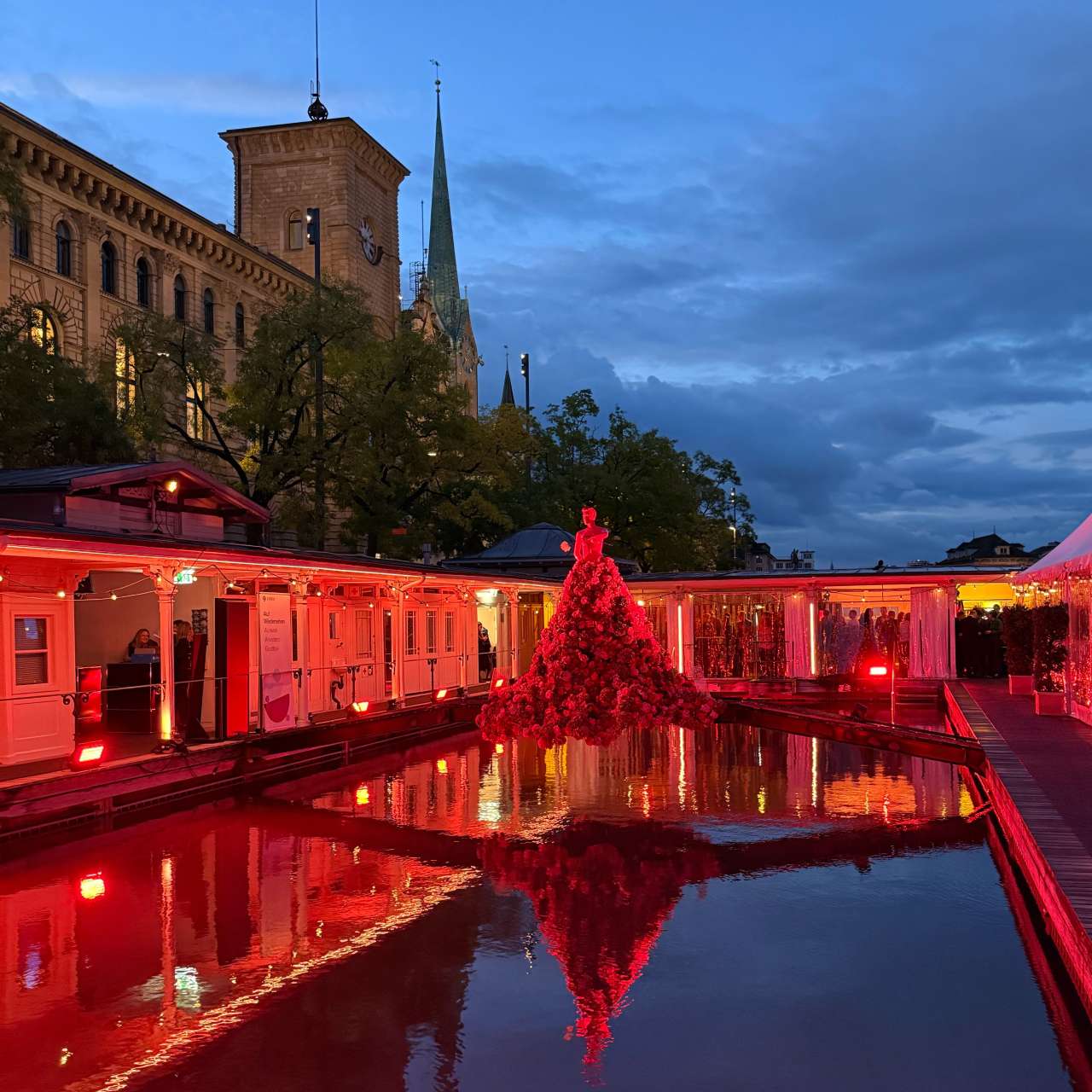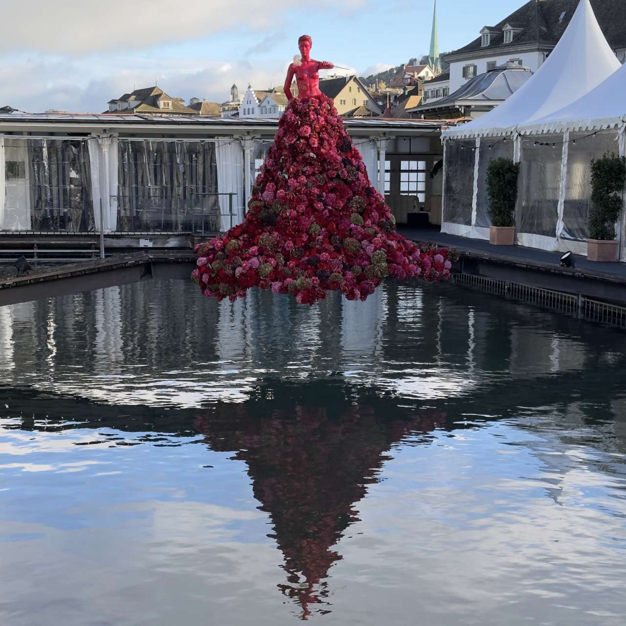 On the occasion of the 20th Zurich Film Festival, Blumen Krämer AG, under the leadership and idea of Paul Fleischli, has created something very special: an elegant red lady, whose dress is made of bright red flowers, has adorned the bridge of the Frauenbadi in Zurich since today.